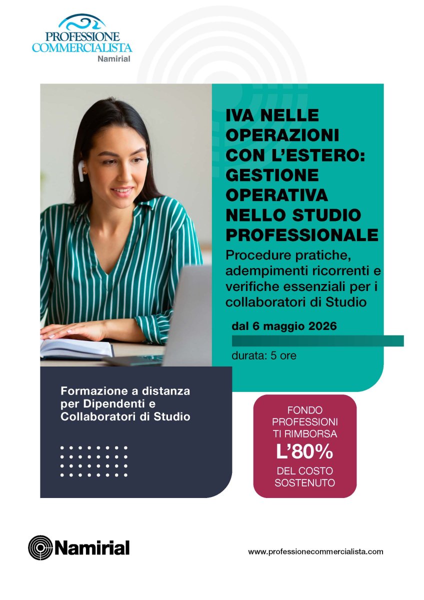 Il corso è rivolto a collaboratori di studio che desiderano rafforzare le proprie competenze nella gestione dell’IVA con l’estero. Il taglio del corso è di tipo pratico e applicativo, con attenzione agli aspetti documentali, agli adempimenti formali e alle criticità più ricorrenti nella gestione quotidiana di Studio.