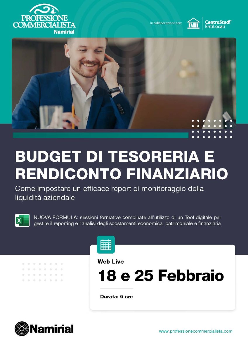 L’obiettivo del corso è quello di fornire ai Professionisti una serie di strumenti operativi utili per impostare un corretto sistema di monitoraggio della pianificazione finanziaria che, mediante “un percorso guidato” con l’uso di Excel, semplifichi la comprensione e la quantificazione delle principali variabili monetarie in entrata e uscita che devono essere sottoposte a controllo per costruire un budget di Tesoreria e un Rendiconto Finanziario.